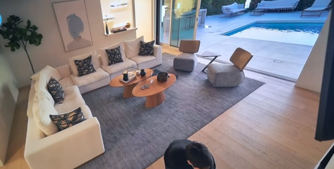 LA에 머무는 동안 지내는 집은 그의 스타일이 고스란히 드러나는 공간이었어요. 거실, 주방, 드레스룸, 침실까지, 제이홉이 좋아하는 것들로 가득 채워져 있었는데, 특히 우드톤 가구들이 눈에 띄더라구요. 제이홉은 우드톤 색감이 자신을 편안하게 해준다면서 애정을 드러냈다고 해요. 저도 우드톤 인테리어를 좋아하는데, 역시 홉이도 보는 눈이 있다니까요! 수영장이 인상적였고 특히 제이홉의 칼각 정리가 매우 인상적였어요