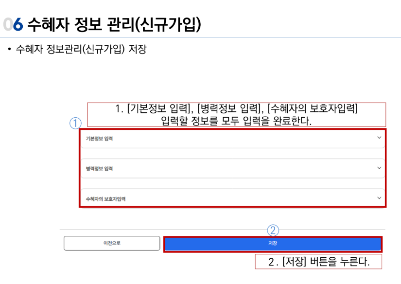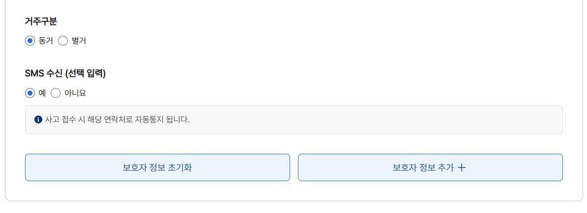 보호자도 추가에서 처, 남편, 자녀, 부모형제,누이,장모,장인 손자 손녀, 기타친척까지 선택가능하며