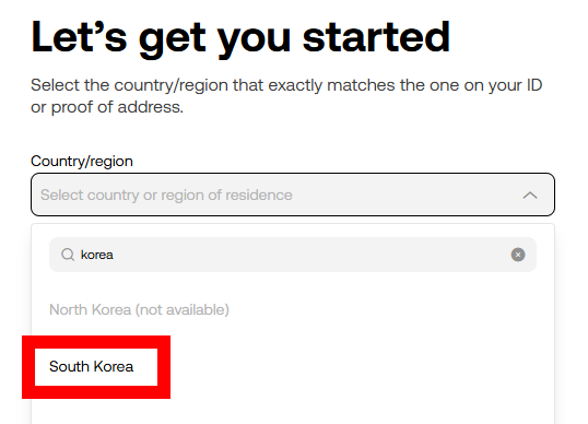 - 국가 선택: 'South Korea'를 선택합니다.